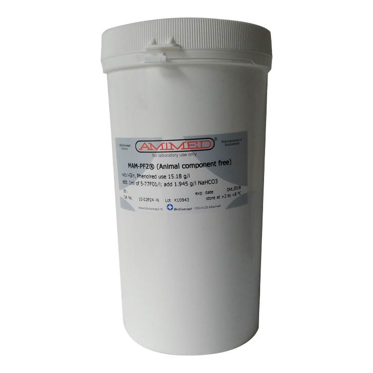 MAM-PF1、MAM-PF2、MAM-PF7d 和MAM-PF7e,MAM-PF培養(yǎng)基不含動(dòng)物性蛋白和多肽,無(wú)成分不明確的水解產(chǎn)物。用戶使用前需自行添加L-谷氨酰胺(0.6一8 mM)。